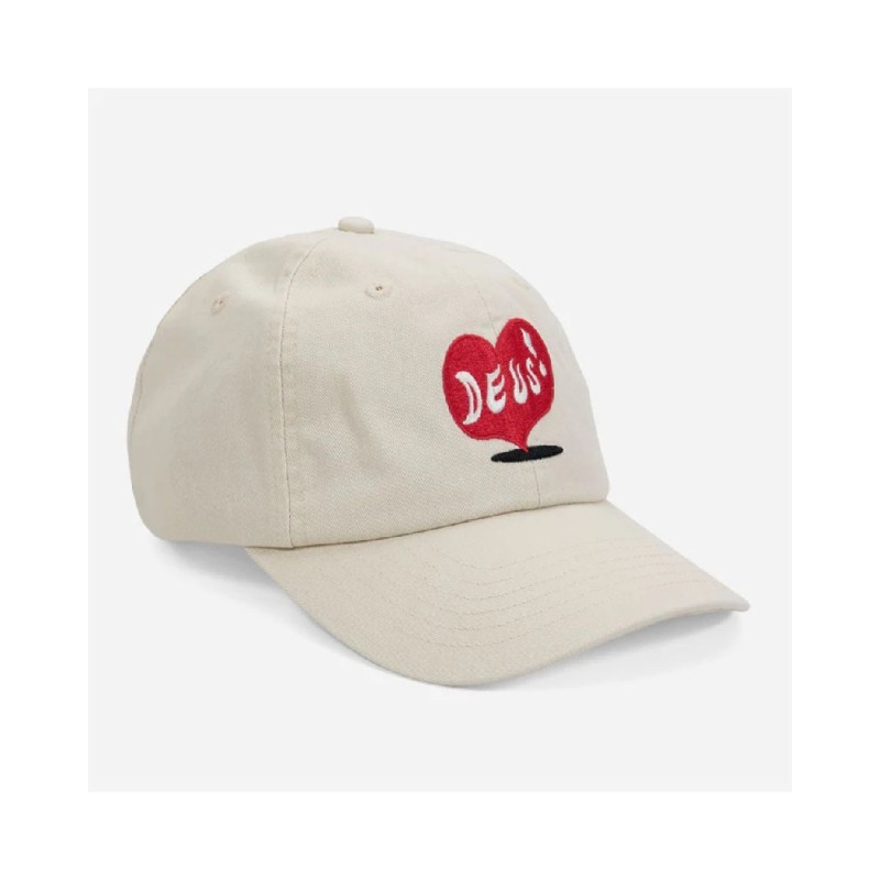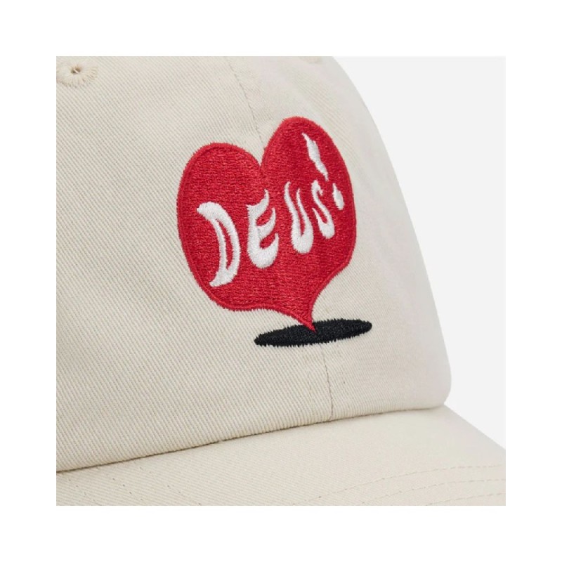 Gorra clásica Deus de 6 paneles con logotipo de corazón bordado, confeccionada en sarga de algodón, teñida en prenda y lavada a piedra con enzimas pesadas para lograr un efecto descolorido intenso.