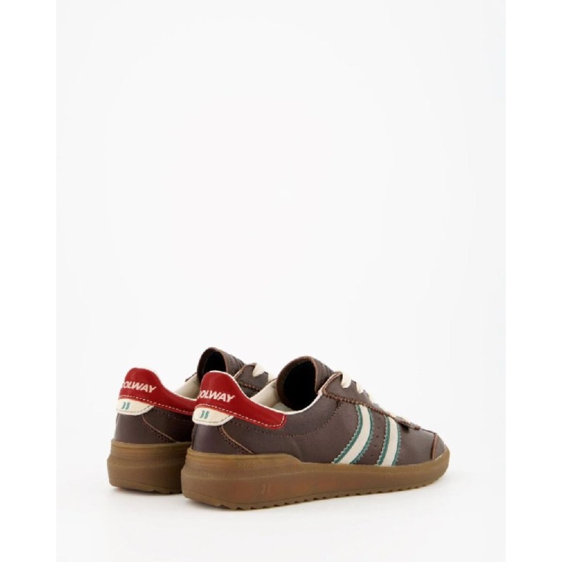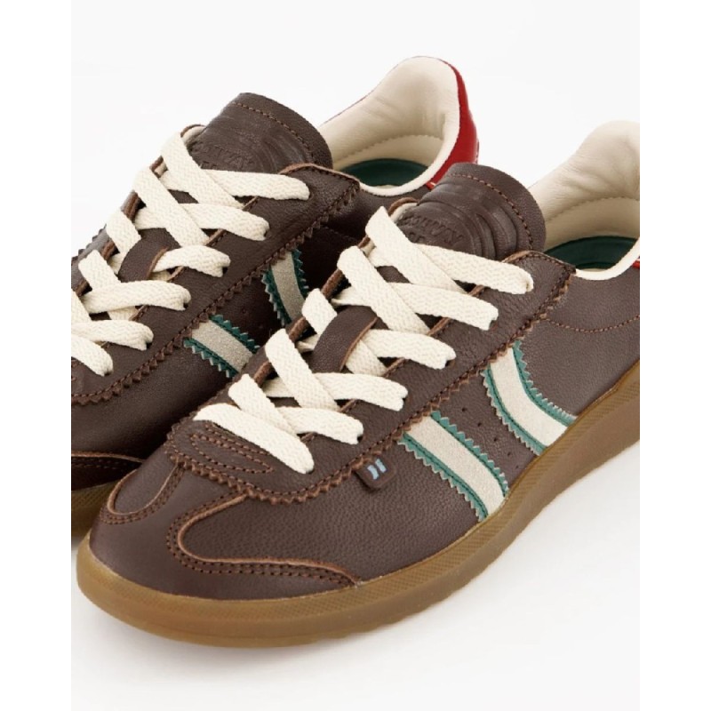Zapatilla con estilo retro, compuesta en su mayoría en serraje. Laterales con el icónico dual a doble color. Suela de goma y plantilla con burbuja de gel para mayor comodidad. Color marrón con detalles en blanco, verde y rojo. Incluye cordones intercambiables.