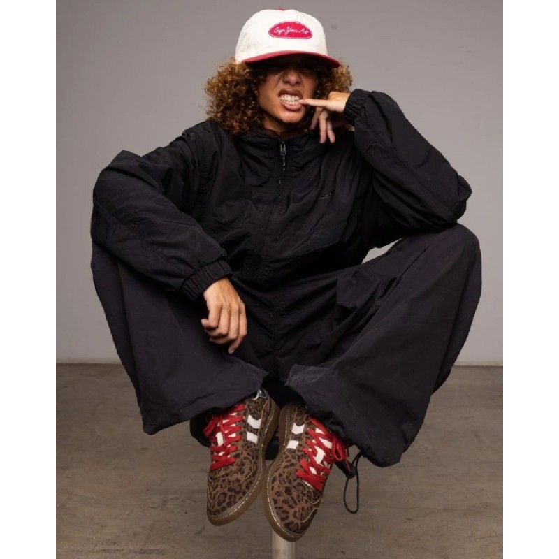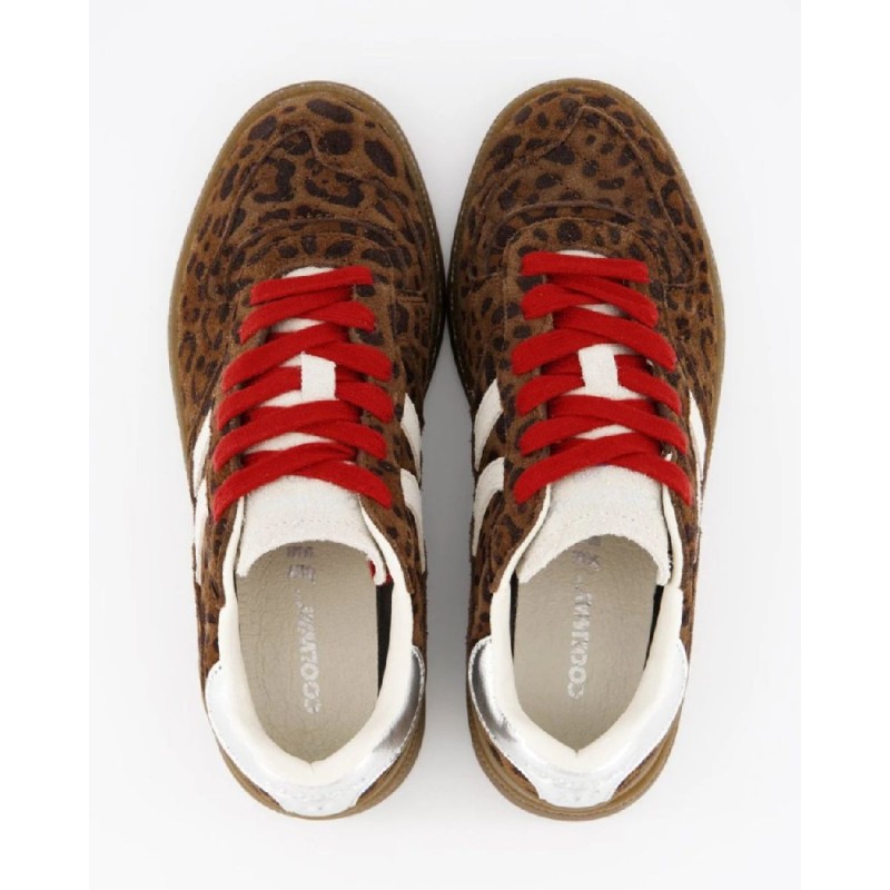 Zapatilla deportiva de serraje con detalles en contraste de color. Lengüeta de piel y preformada con un acolchado figurado. Vistas del forro en piel. Cordones planos de algodón en dos tonos intercambiables. Cuello ligeramente acolchado. Cuenta con el nombre del modelo “GOAL” en lateral en oro viejo.