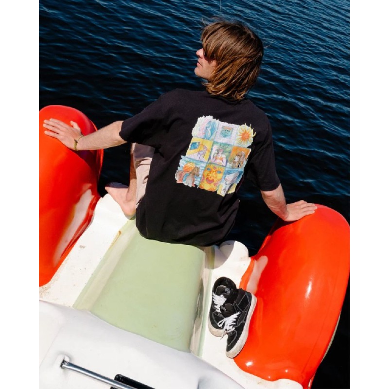 Ponte esta camiseta de algodón de corte amplio y deja que las serigrafías delante y detrás hablen por ti.