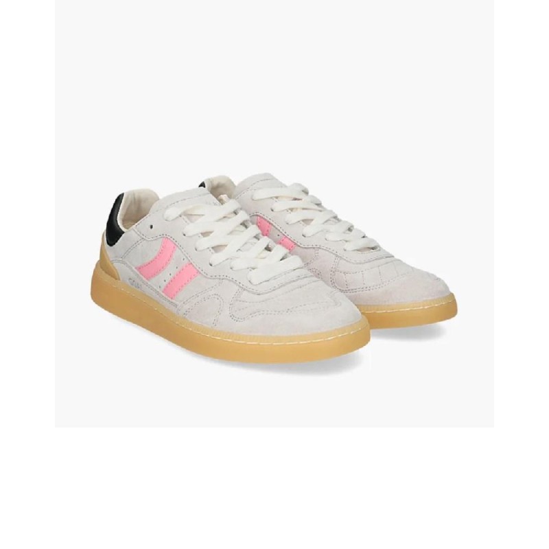 Zapatilla deportiva de serraje con detalles en contraste de color. Lengüeta de piel y preformada con un acolchado figurado. Vistas del forro en piel. Cordones planos de algodón en dos tonos intercambiables. Cuello ligeramente acolchado. La parte delantera lleva un refuerzo de pespuntes. Suela flexible de goma/caucho que aporta durabilidad y agarre. Cuenta con el nombre del modelo “GOAL” en lateral en oro viejo.