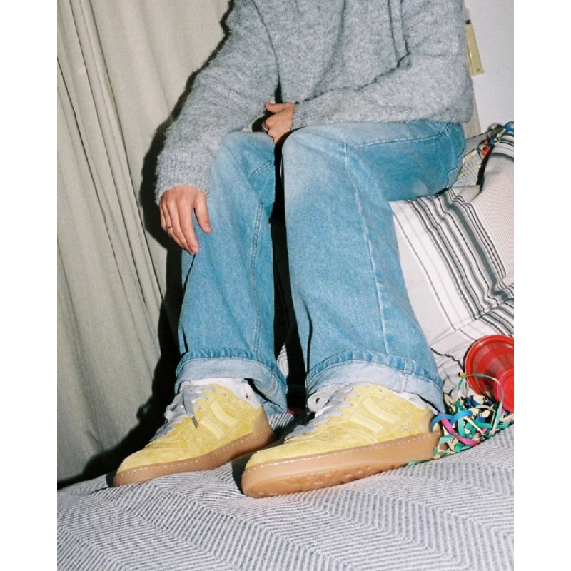 Zapatilla deportiva de serraje con detalles en contraste de color. Lengüeta de piel y preformada con un acolchado figurado. Vistas del forro en piel. Cordones planos de algodón en dos tonos intercambiables. Cuello ligeramente acolchado. La parte delantera lleva un refuerzo de pespuntes. Suela flexible de goma/caucho que aporta durabilidad y agarre. Cuenta con el nombre del modelo “GOAL” en lateral en oro viejo.